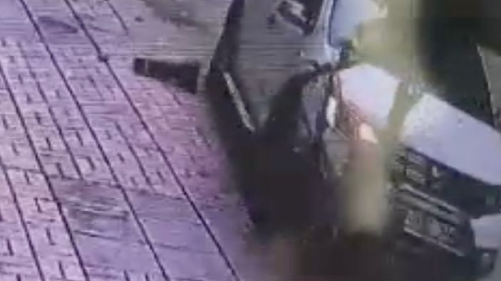 Kaza anı bir iş yerinin güvenlik kamerasına yansıdı.