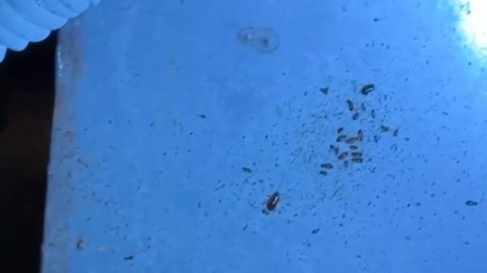 Zabıta ekiplerinin tek tek görüntülediği böcek yuvaları hayrete düşürdü. Bir işletmede, ağzı açık şekilde saklanan dondurmanın üzerine düşen kıl ve çeşitli maddeler görüntülendi.
