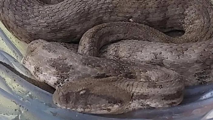 Bulduğu yılanı bir kutuya koyan Ballandı, durumu Doğa Koruma ve Milli Parklar (DKMP) Müdürlüğü ekiplerine bildirdi.