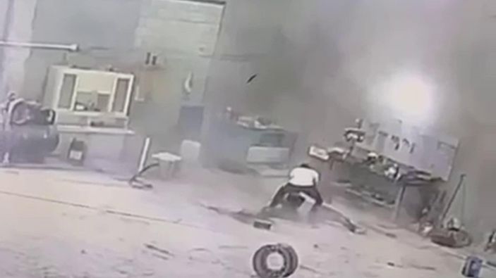 Kentteki bir iş yerinde, hava basılan lastiğin patlamasının ardından bir kişi hayatını kaybetti. Olay anı, iş yerinin güvenlik kamerasına yansıdı.