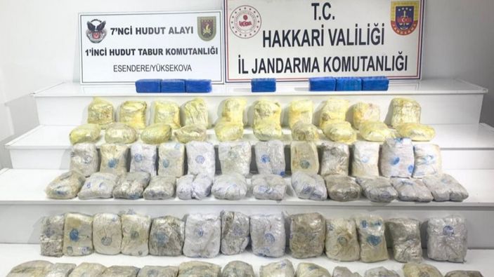 Hakkari'nin Yüksekova ilçesi kırsalında, İran sınırına yakın bir noktada çuvallarda 127 kilo eroin ele geçirildi.