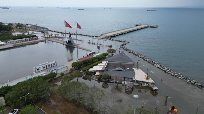 Depremden sonra sahil şeridinde zeminde yaşanan çökme ve sıvılaşma sebebiyle deniz taşkınlarının yaşandığı sahil şeridi su altında kalarak vatandaşlara zor anlar yaşattı.