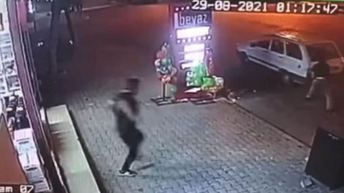 Yaşanan olay iş yerinin güvenlik kamerasına yansıdı. Görüntülerde otomobilin geri geri hareket etmesinin ardından Bargın’ın dükkanından yola atlayarak aracı durdurmaya çalıştığı, bu sırada başka bir araca çarpmak üzereyken arkadaşının yardıma geldiği görülüyor.