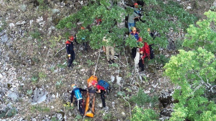 Yaklaşık 300 metre yüksekliğindeki kayalıklarda 20 metre sürüklenen Erol, mahsur kaldı.