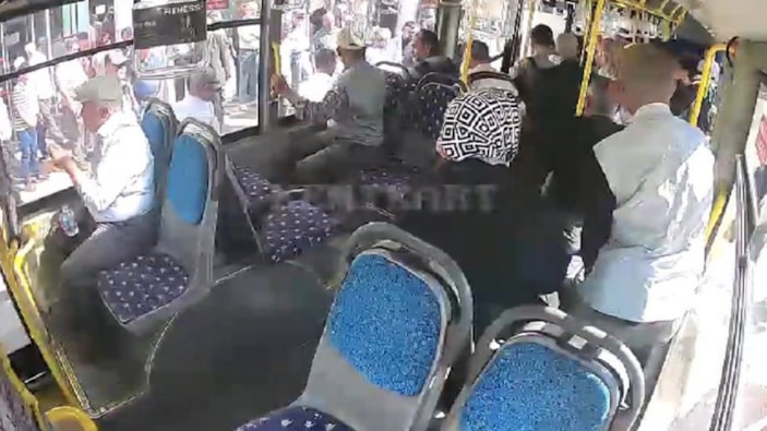Olay anı da otobüsün güvenlik kamerasınca kaydedildi.