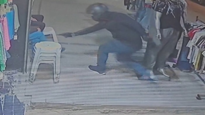 Saldırı anı iş yerinin güvenlik kamerasıyla saniye saniye görüntülendi.