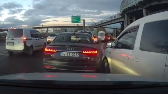Öndeki sürücünün durmaması üzerine emniyet şeridi ihlali yapan otomobil, üst üste üç kez kasıtlı şekilde çarparak araca hasar verdi.