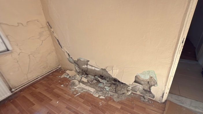 Kal, "Yemek yaparken bir anda geldiler ve bana çıkın dediler. Tamam çıkayım dedim. 2-3 tane eşya alın, mühürleyeceğiz dediler. Yan taraftaki inşaatta yoğun bir çalışma vardı. Tehlikeli çalışmalar duvarları bu hale getirdi. Şu an dışarıdayız, bizi apar topar çıkarttılar, nereye gideceğimizi de bilemiyoruz" ifadelerini kullandı.