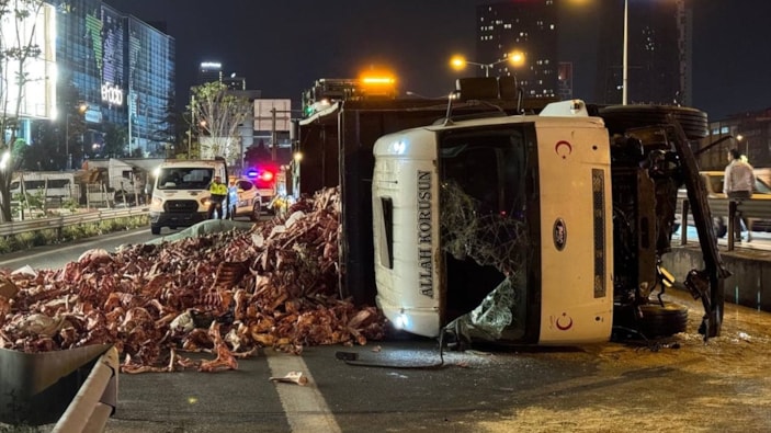 İstanbul Küçükçekmece'de devrilen sakatat yüklü kamyonun sürücüsü kaçtı
