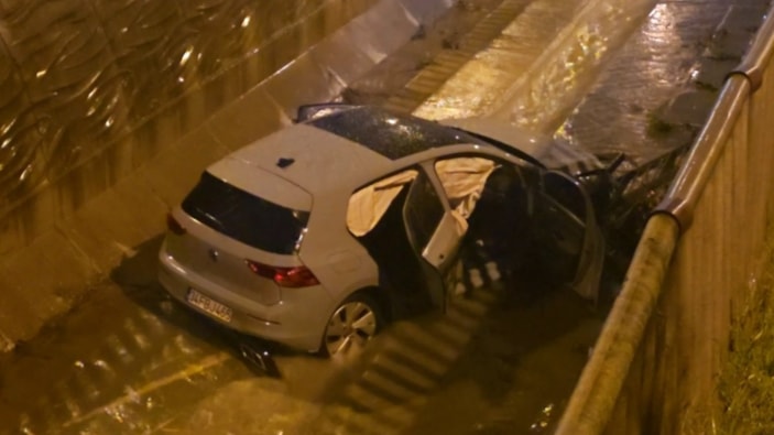 İstanbul'un Sultanbeyli ilçesi Adil Mahallesi'nde O.Ç. hakimiyetindeki otomobil, sürücüsünün direksiyon hakimiyetini kaybetmesi sonucu yol kenarındaki bariyerlere çarparak dereye uçtu.