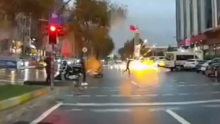 Çevredeki vatandaşların ve olay yerinden geçen motosiklet sürücüsünün yaşadığı panik, cep telefonu kamerasına yansıdı.