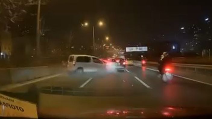 Kaza anı yolda seyreden başka bir sürücünün araç kamerasıyla kaydedildi.