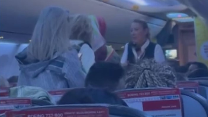 Anonsları ve kabin memurunun uyarılarını dikkate almayan bazı yolcular yerlerine oturmadı ve taşkınlık çıkarmaya başladı.