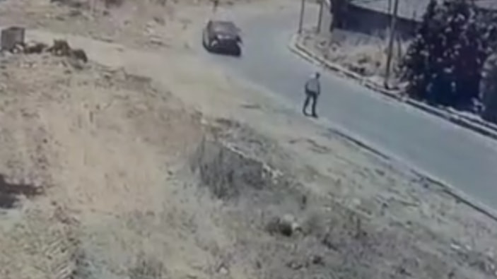 Görüntülerde, 15 yaşındaki çocuğun idaresindeki SUV aracın, hızla viraja girdiği ve aracın kontrolünü kaybederek yol kenarında yürüyen 44 yaşındaki İbrahim Eke'ye çarptığı anlar yer aldı.