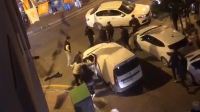Kadınların araya girmesiyle taraflardan biri koşarak ulaştı. Yaşananlar ise kameralara yansıdı.