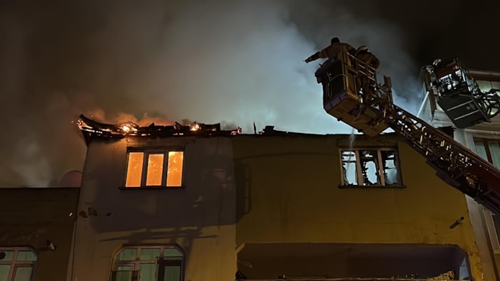 Çatıdan alevlerin yükseldiğini gören vatandaşların ihbarı üzerine olay yerine çok sayıda polis, sağlık ve itfaiye ekipleri sevk edildi.