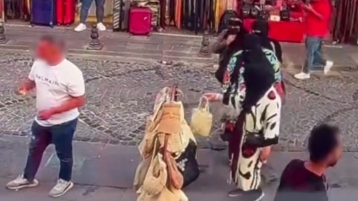 Fatih'te yüzleri kapalı 4 kadın, bir çanta dükkanın önünde ürünleri inceleme bahanesiyle, 3 çantayı alarak kayıplara karıştı. O anlar güvenlik kamerasına yansıdı.