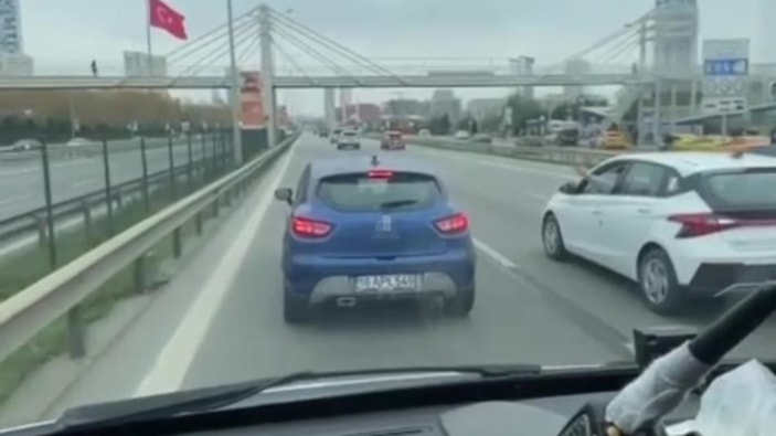 Sol şeritte olmasına rağmen düşük hızda ilerleyen sürücü, aynı zamanda trafikteki akışı yavaşlattı.