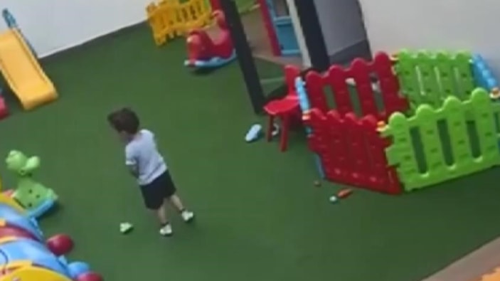 2.5 yaşında olduğu öğrenilen çocuğun anaokulu bahçesinde tek başına kaldığı anlar cep telefonu kamerasına yansıdı. Görüntülerde çocuğun 'Anne' diyerek ağladığı ve bağırdığı anlar görülüyor.