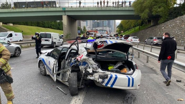 Çarpmanın etkisiyle hareket eden polis otosu da önünde park halinde olan başka bir otomobile çarptı.