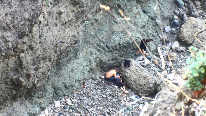 Ekipler, elverişsiz arazi şartları nedeniyle sahilde kayalıkların arasında yatan kazazedeye ulaşamadı.