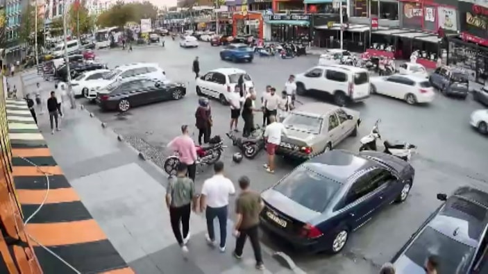 Kazanın ardından, motosiklet sürücüsüyle otomobil sürücüsü arasında tartışma çıktı. Otomobilinden inen sürücüyle motosikletli birbirine saldırdı.