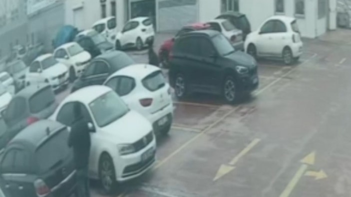 Güvenlik kamera görüntülerinde; şüphelinin park halindeki otomobilin yanına yaklaştığı, kelebek camını kırıp kapıyı açtıktan sonra çantayı aldığı görüldü.
