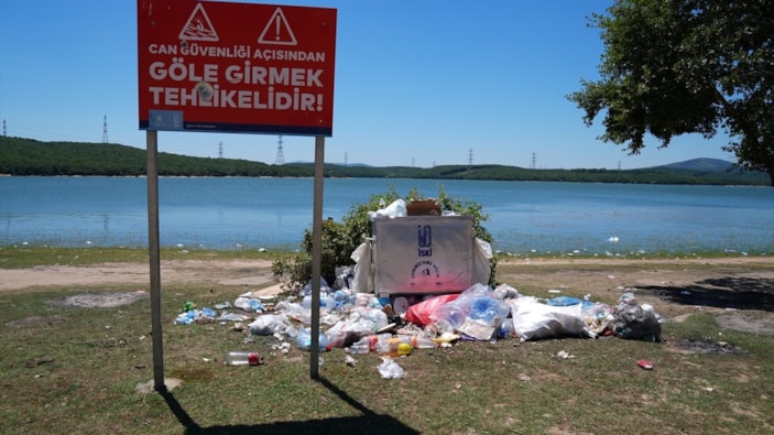 Çiftalan-Kemerburgaz yolu üzerindeki ormanlık alanlarda pet şişe, cam şişe, poşet ve yiyecek artıkları bulunurken, tatilcilerin atıklarını çöp konteynerlerine atmak yerine, elektrik direklerine ve ağaç kenarlarına bıraktıkları görüldü.