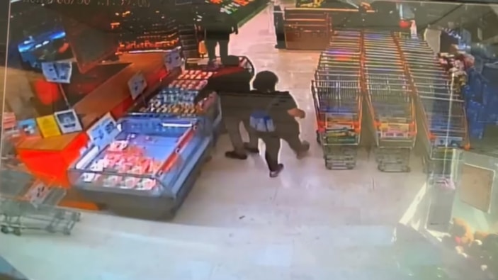 Görüntülerde, kadının yürüyerek markete girdiği ve reyona yöneldiği görülüyor. Bir sonraki fotoğraf karesinde ise kasada alışveriş yaptığı görülüyor.