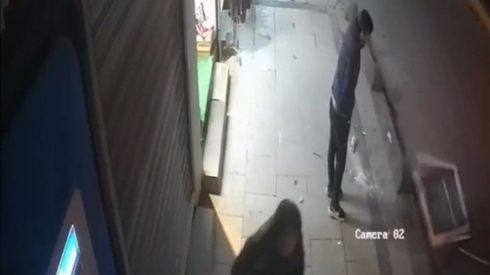 Ardından kıyafetlerine gelen tozları temizleyerek, yoluna devam etti. Yaşananlar güvenlik kamerası tarafından kaydedildi.