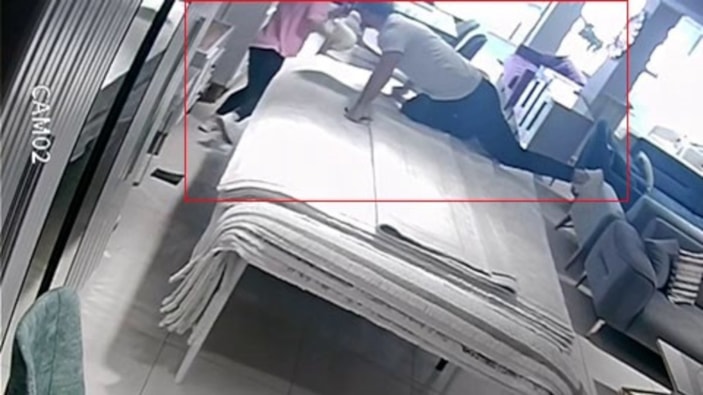 Küçükçekmece'de boşanmak isteyen bir kadın, eşi tarafından iş yerinde darbedildi. Elinde bıçakla iş yerine gelen şahsın kadına saldırdığı anlar güvenlik kamerasına yansıdı.
