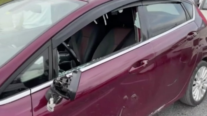 Daha sonra otomobile de vuran saldırgan, araca zarar verdi.