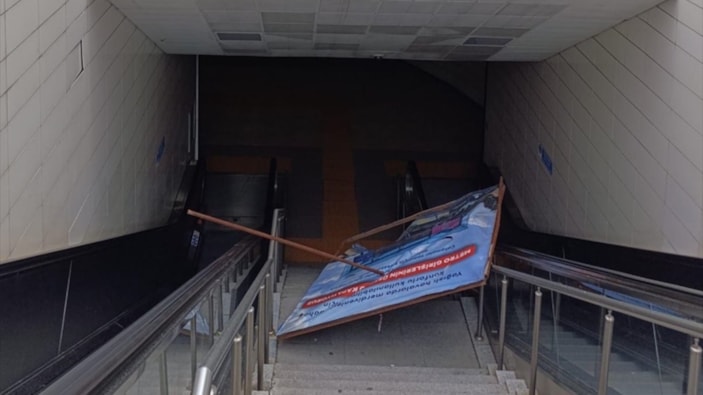 İstanbul'da bir metro istasyonunda üzerine reklam panosu düştü