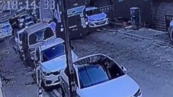 Öte yandan kaza, bir iş yerinin güvenlik kamerasınca kaydedildi.