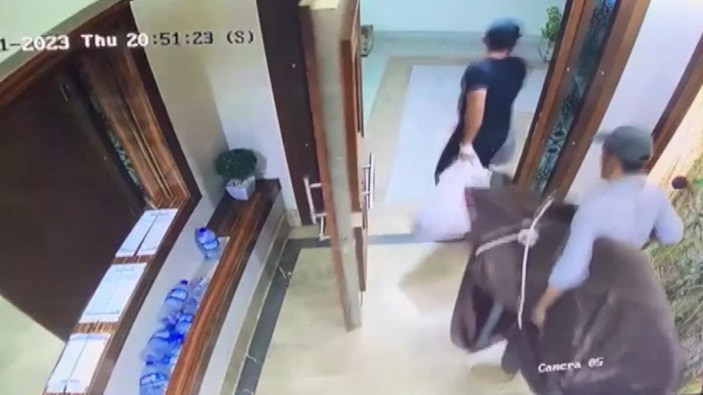 Rahat tavırlarıyla dikkat çeken hırsızların her hareketi, binanın güvenlik kamerası tarafından saniye saniye kaydedildi.