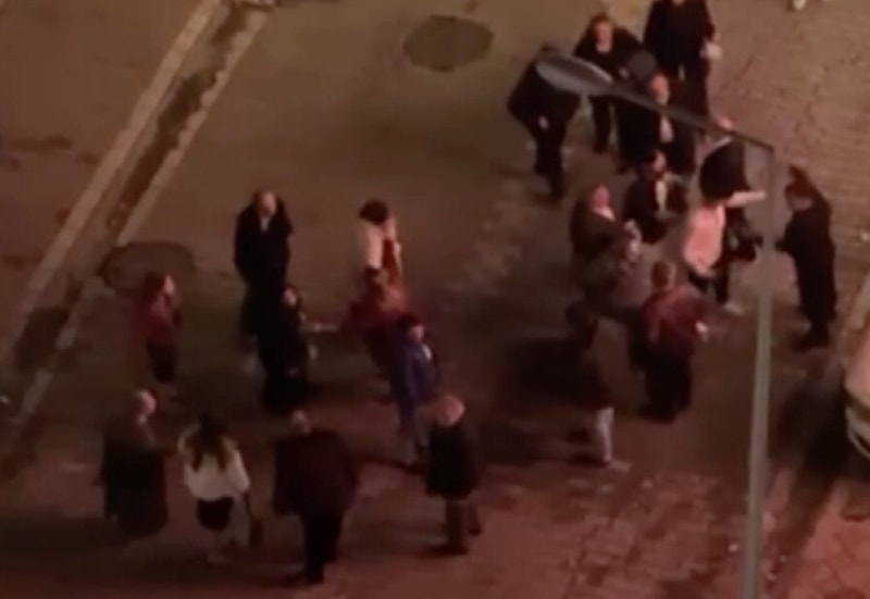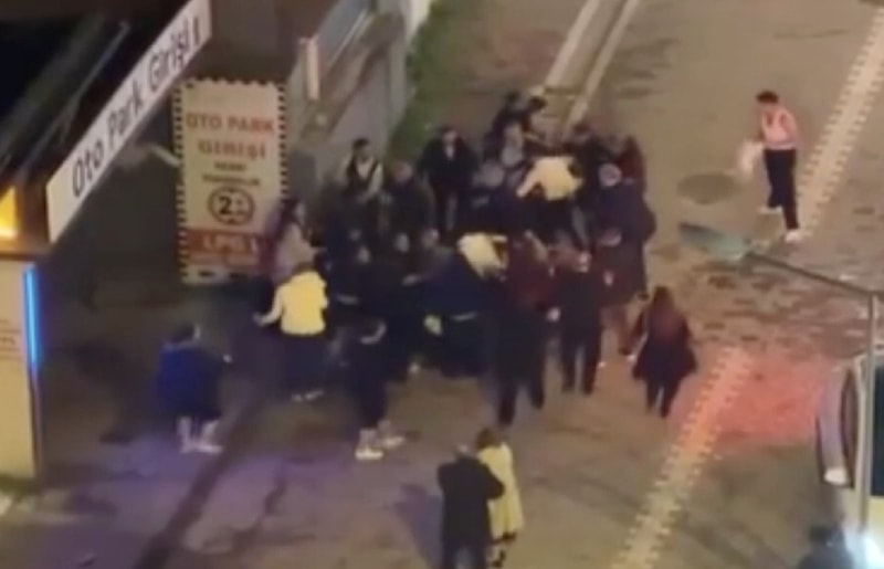 Görüntülerde, kalabalık iki grubun birbirine tekme ve yumruklarla saldırdığı anlar yer aldı.