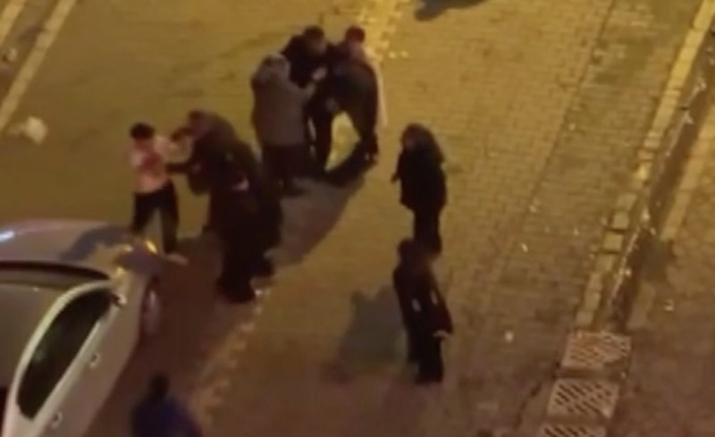Tekme ve yumrukların havada uçuştuğu o anlar çevredekiler tarafından cep telefonu ile anbean görüntülendi.