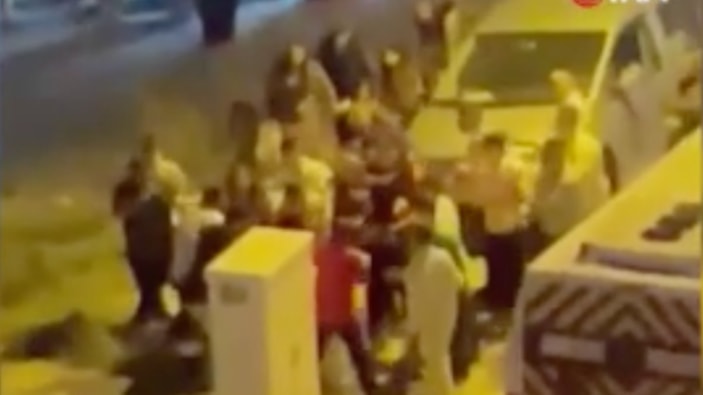 Düğün salonundan sokağa kadar taşan yumruklu kavga, çevredekiler tarafından kayda alındı.
