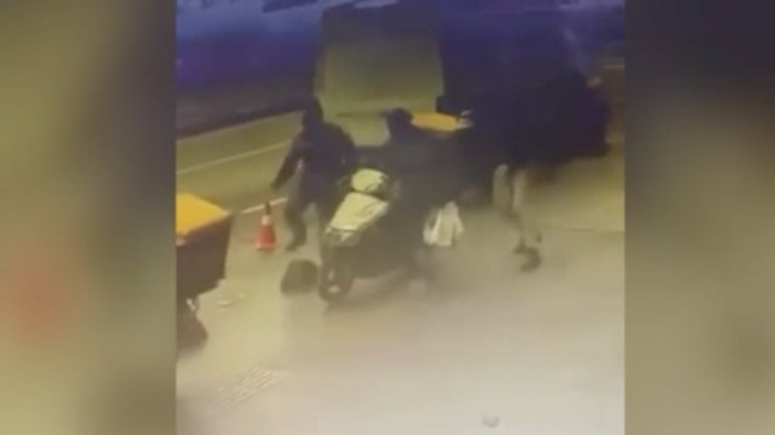 Bahçelievler ilçesinde polisin şüpheliyi yakalamak için kuryenin motosikletine binerek kovalamacaya devam ettiği anlar güvenlik kameralarına yansıdı.