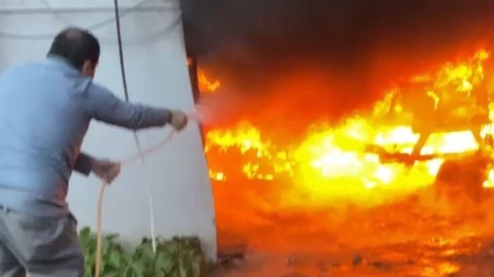 Garajdan dumanların yükseldiğini gören motosiklet sahibi Özgür Muzaffer Ş., polis ve itfaiye ekiplerine ihbarda bulundu.