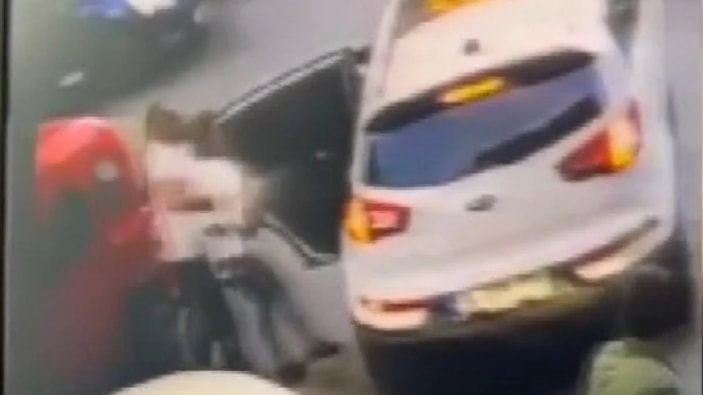 Otomobilden çıkan kişi, kadını zorla otomobile bindirmeye çalıştı.