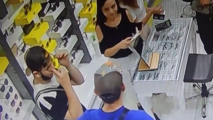 Bir başka müşteriye gözlüğü göstermek isterken bir gözlüğün eksik olduğunu fark eden mağaza yetkilisi Gökhan Güldalı, personellere gözlüğü sorduktan sonra bulamayınca güvenlik kamerasını inceledi.