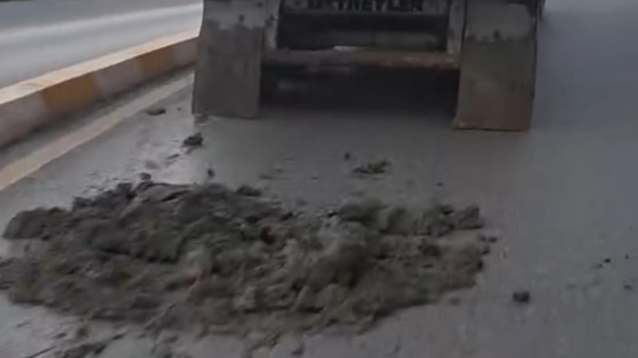 İstanbul'un Kağıthane ilçesine bağlı Kemerburgaz Caddesi’nde seyreden 34 HA 6585 plakalı hafriyat kamyonu sürücüsü, kasadan dökülen çamura rağmen yolculuğunu sürdürdü.