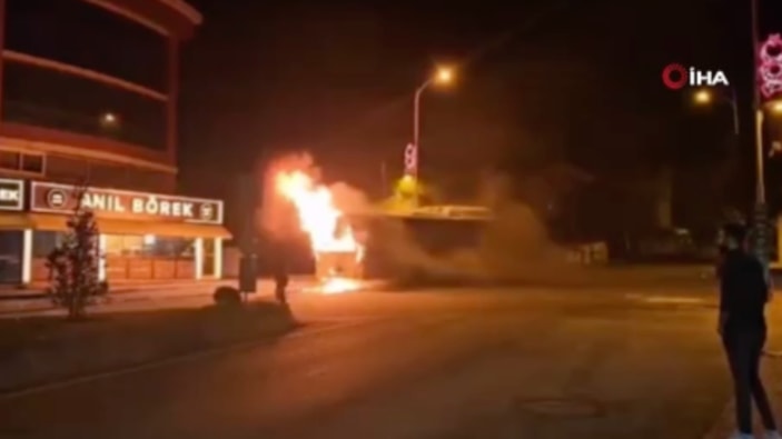 Otobüsü kaplayan yangını olay yerine gelen itfaiye ekipleri söndürürken araç kullanılamaz hale geldi.