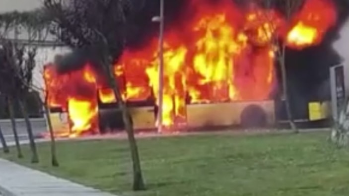 İstanbul'da İETT otobüsü alevler içinde yanarak kullanılamaz hale geldi