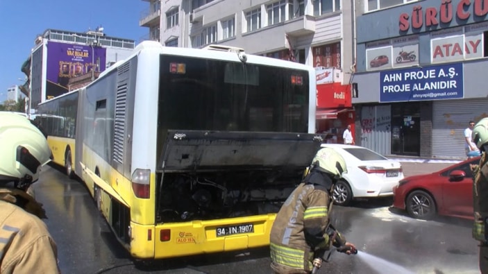 Kadıköy'de seyir halindeki İETT otobüsünün motor kısmında çıkan yangın paniğe sebep olurken, ihbar üzerine olay yerine gelen itfaiye ekipleri alevleri kısa sürede kontrol altına alarak olası bir faciayı önledi.