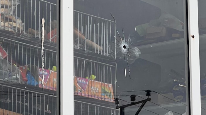 Saldırı sırasında çevredeki vatandaşlar panik içinde kaçışırken, dükkanın kapalı olması olası bir faciayı önledi.