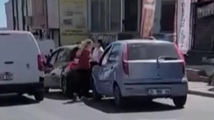 Çevredekilerin araya girmesiyle taraflar güçlükle ayrılırken, kavga anları çevredeki bir vatandaş tarafından cep telefonu kamerasıyla görüntülendi.