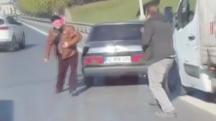 Bahçelievler Basın Ekspres yolunda kamyonet ile otomobili kaza yaptı. Kaza sonrası sürücülerden biri biber gazı sıktı, diğeri bıçakla saldırdı. o anlar kameraya yansıdı.