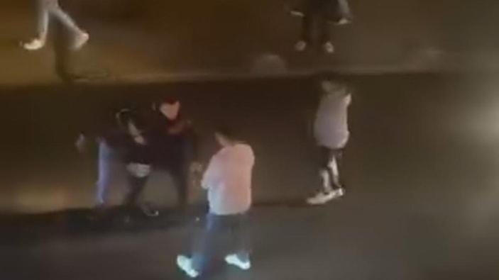 Birbirlerine küfreden taraflar ardından tekme ve yumruklarla birbirine vurmaya başladı.